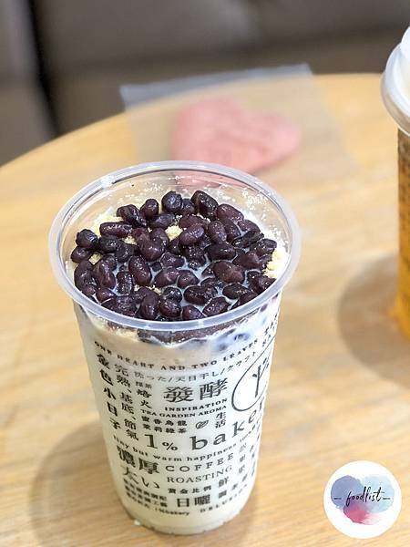 採用台灣百年豆餡加鮮奶,灑上手工脆餅及蜜釀紅豆增添口感,