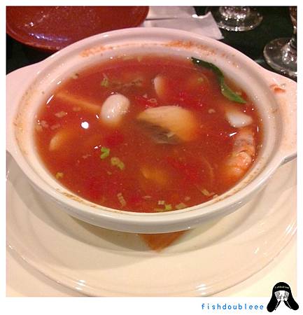 海鮮燉魚湯裡面有很多料喲像是蛤蠣、魚片,搭配番茄酸酸的蠻好喝的![]()